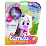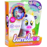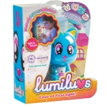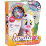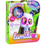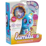 Das Lumiluvs Tierchen leuchtet und plappert, wenn man auf den Bauch und das Mündchen pustet.