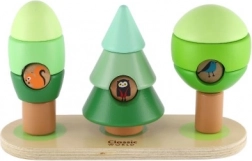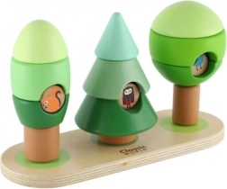 Dieses niedliche Wald-Steckspiel bringt Kindern die Freude am Entdecken von Formen, Farben und einfachen Steckprinzipien. Aus den einzelnen Teilen entstehen drei grüne Bäume, und jeder verbirgt ein anderes Tier – eine Eule, einen Specht und ein Eichhörnchen. Dank des robusten Holzes und der angenehmen Verarbeitung liegt das Set auch in kleinen Händen gut.