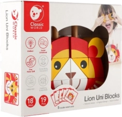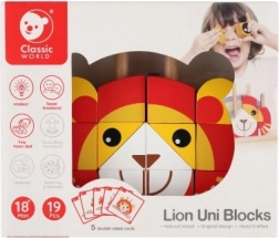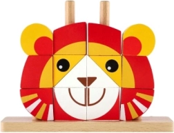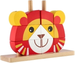 Dieses farbenfrohe Holzpuzzle in Löwenform bietet Kindern sicheres und sinnvolles Spiel. Die Teile in kräftigen Farben werden auf Stäbe in der Holzgrundplatte gesteckt, was den präzisen Griff fördert und logisches Denken trainiert. Dank der fünf zweiseitigen Karten können Kinder nach Vorlagen puzzeln oder eigene Kombinationen gestalten.
