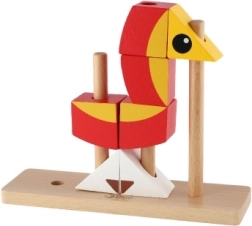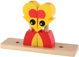 Das Auffädeln und Stapeln der Teile auf die Stäbe trainiert den präzisen Griff, die Hand-Auge-Koordination und die Geduld – ideal für kleine Baumeister ab 18 Monaten.
