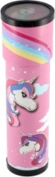 Das fröhliche rosafarbene Design mit Einhorn und Regenbogen regt die Fantasie an und macht das Kaleidoskop zu einem beliebten Spielzeug für kleine Träumerinnen und Träumer.