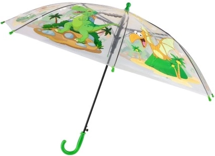 Dieser transparente Kinder-Regenschirm mit verspielten Dinosauriern ist ideal für Schule, Kindergarten und Ausflüge. Die transparente Kuppel sorgt beim Gehen für eine bessere Sicht, während stabile Kunststoff- und Metallelemente zuverlässigen Schutz vor Regen bieten.