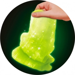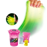 Stelle deinen eigenen Slime her. Gib das Pulver in den Becher, füge Glitzer und eine Figur hinzu. Fülle Wasser bis zur Markierung auf, schließe den Becher und schüttle die Mischung kräftig. Öffne dann den Becher und warte fünf Minuten. Der Slime ist fertig. Kombiniere Farben, füge Glitzer hinzu und genieße den echten Slime-Spaß. Leuchtet im Dunkeln. Für Kinder ab 6 Jahren.