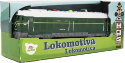Die Lokomotive ist sofort spielbereit – im Paket finden Sie auch 3× AG13 Batterien. Die hochwertige Verarbeitung mit detaillierten Elementen wie Griffen und Lüftungsöffnungen regt die Fantasie an und fördert die Feinmotorik.