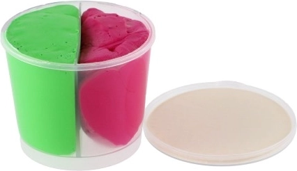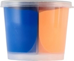 Die praktische Unterteilung des Bechers ermöglicht es, zwei kräftige Farben sofort zum Formen und Mischen bereit zu haben – übersichtlich und ohne Unordnung.