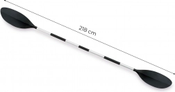 Kajakpaddel mit einer Länge von 2,18 m. Aluminiumstange mit zwei Kunststoffblättern. 3 Größenpositionen.