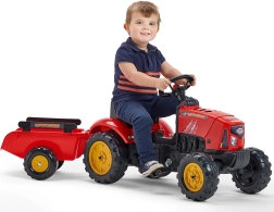 Den Anhänger je nach Bedarf ankuppeln oder abnehmen. Ideal für Spielzeug, Sand oder kleine Aufgaben eines jungen Landwirts.