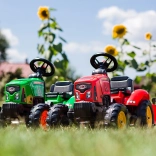 Der robuste Kinder-Trettraktor ist aus hochwertigem und widerstandsfähigem Kunststoff gefertigt und für den täglichen Spielgebrauch konzipiert. Dank des Kettenantriebs auf der Hinterachse und der schwenkbaren Vorderachse lässt er sich leicht bedienen und fördert Motorik sowie Gleichgewicht. Die öffnende Motorhaube mit Motor-Imitation verleiht realistische Details, die Kinder lieben.