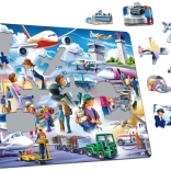 Tauchen Sie ein in die Welt der Piloten, Flugbegleiter und Passagiere mit dem LARSEN-Puzzle Flughafen. Das Bild besteht aus unregelmäßigen Teilen ohne klassische Verriegelungen, was eine frische Herausforderung bietet und Fantasie sowie Feinmotorik der Kinder fördert. Dank des stabilen Randes und der Tafelausführung ist das Puzzeln einfacher und das Verstauen mühelos.