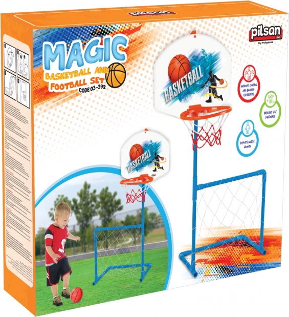 Dieses praktische 2-in-1-Set vereint zwei beliebte Sportarten in einer kompakten Konstruktion. Ideal für Garten, Hof und Kinderspielplatz und fördert aktive Zeit an der frischen Luft. Dank der Kompatibilität mit einem originalen Basketball genießen Sie ein authentisches Spielerlebnis.