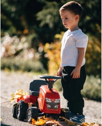 Den praktischen Anhänger können Sie leicht an- und abkuppeln – das Kind transportiert Spielzeug, Sand und kleine Lasten wie ein echter Landwirt.