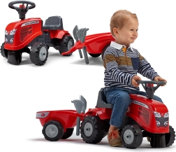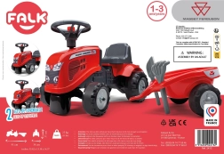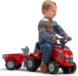 Entfesseln Sie die Fantasie der Kinder mit dem robusten Rutschtraktor BABY MASSEY FERGUSON der Marke FALK. Das Modell in ikonischem Rot besteht aus hochwertigem, widerstandsfähigem Kunststoff und ist für kleine Fahrer ab 1 Jahr konzipiert. Dank der kompakten Abmessungen, der drehbaren Vorderachse und der Hupe lässt er sich leicht steuern und sorgt für viel Spaß drinnen und draußen.