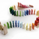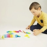 Bringen Sie endlosen Spaß mit der Detoa Domino-Bahn mit Glocke nach Hause! Dieses kreative Set, bestehend aus 95 farbigen Steinen, ist ideal für alle kleinen Baumeister. Das Erstellen eigener Strecken und das Beobachten der Effekte des Domino-Falls fördern Geduld und logisches Denken bei Kindern.