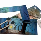 Holz (Komponenten und Stäbchen), Karton/Papier (Kulissen)