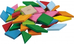 Bunte Holzsteine laden zum Legen und Experimentieren ein. Beim Greifen der Teile trainieren Kinder die Feinmotorik der Finger, ihre Koordination und das kreative Denken. Das Spiel fördert Selbstständigkeit und die Freude am Entdecken.