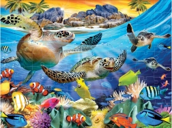 Entdecken Sie die Faszination des räumlichen Puzzelns mit dem 3D-Puzzle Schildkrötenstrand. Der spezielle optische Effekt verleiht dem Bild Tiefe, sodass manche Figuren oder Objekte weiter entfernt erscheinen als jene im Vordergrund. Kinder trainieren beim Puzzeln ihre Feinmotorik, Geduld und Detailwahrnehmung und erleben zugleich die Freude über das fertiggestellte Bild.