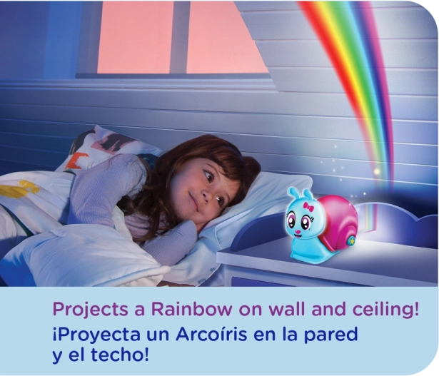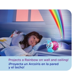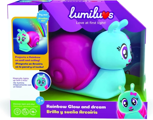 Die helle und freundliche Schnecke Lumiluvs ist der ideale Begleiter beim Zubettgehen. Drücken Sie einfach die Taste am Häuschen und an Wand und Decke erstrahlt ein Regenbogen, der ein gewöhnliches Zimmer in einen magischen Ort verwandelt.
