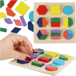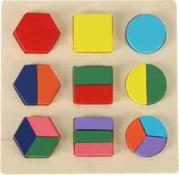 Diese großartige Holz-Puzzlespiel ermöglicht es Kindern, logisches Denken und das Erkennen von Formen zu üben. Das Spiel basiert auf dem einfachen Prinzip der Anpassung der Formen an die entsprechenden Öffnungen, was zur Entwicklung kognitiver Fähigkeiten des Kindes beiträgt. Geeignet zum Lernen der Farbnamen und Grundlagen der Mathematik, da das Puzzle verschiedene Formen und Farben zur visuellen Stimulation umfasst.