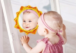 Enthalten sind abnehmbare Hänge-Spielzeuge, ein Spiegel zur Selbstwahrnehmung, eine Rassel-Wolke, die Regengeräusche imitiert, drei Ring-Beißer und ein elektronisches Modul mit Melodien und Naturgeräuschen. Die Matte ist waschbar bei 30 °C, Kunststoffteile lassen sich mit einem feuchten Tuch abwischen. Ein sicherer Spielbereich, der Bewegungskoordination, räumliches Wahrnehmen und Vorstellungskraft fördert.