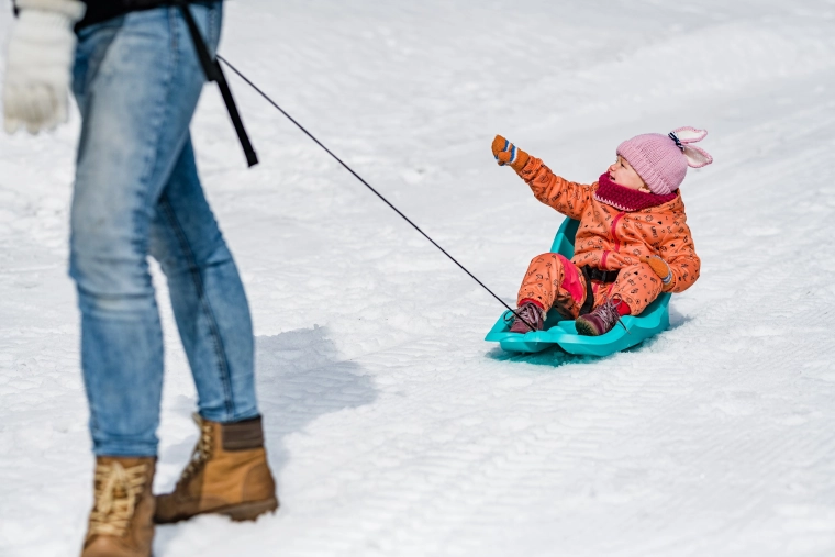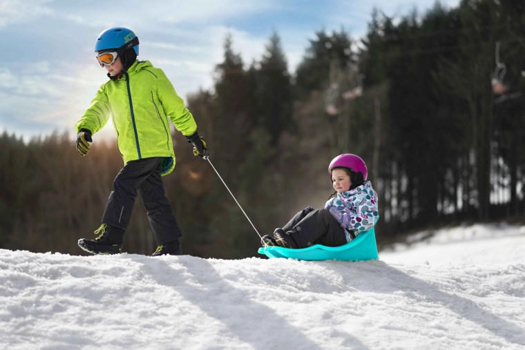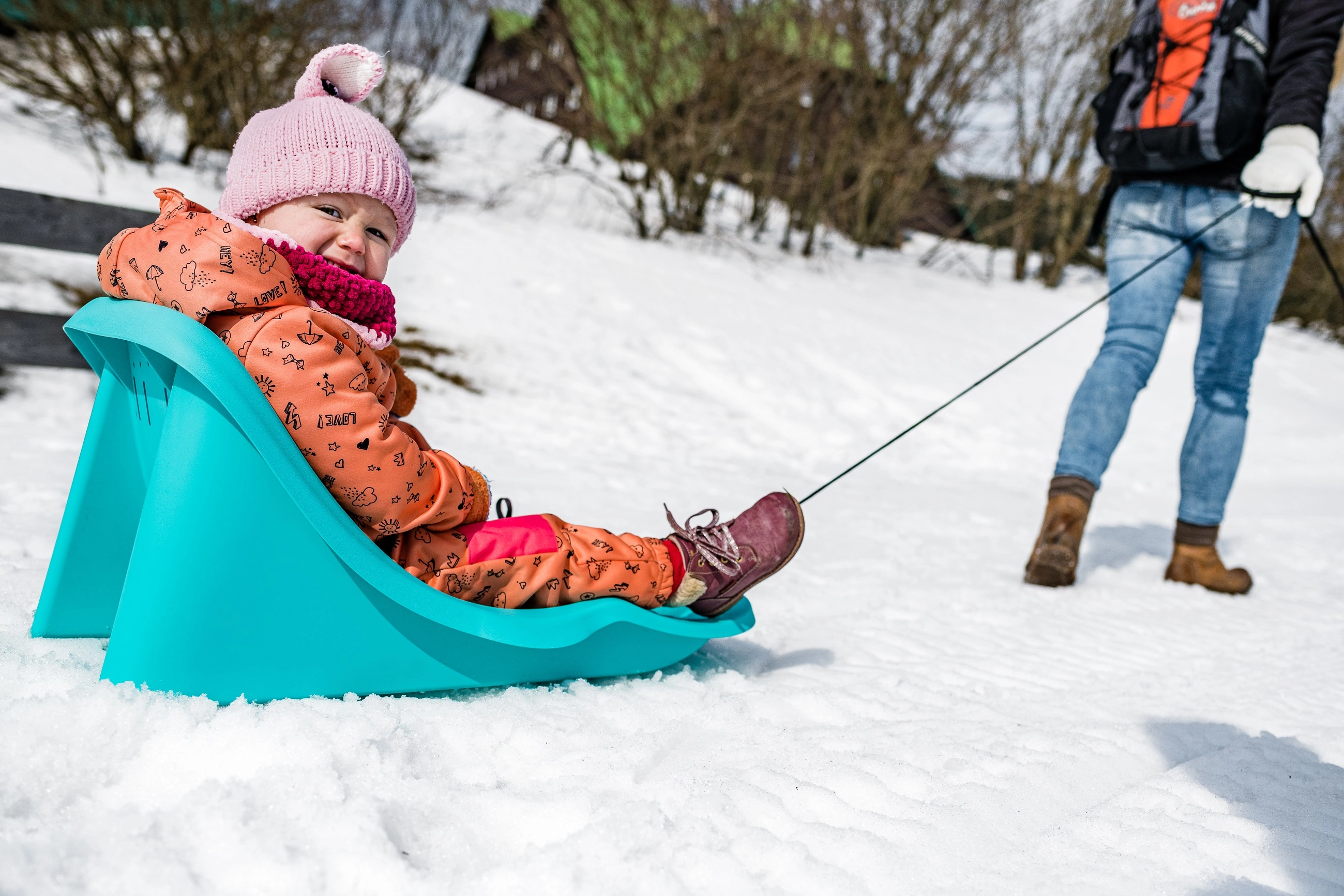 Die praktische Größe und das geringe Gewicht erleichtern Handhabung und Transport. Doppelte Kufen gewährleisten Stabilität im Schnee und ein gleichmäßiges Gleiten. Ideal für die ersten Bobfahrten sowie zum bequemen Ziehen auf winterlichen Wegen oder der Piste.