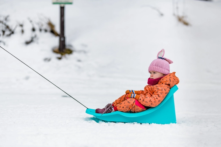 Der Kinderbob Baby Rider bietet eine sichere und komfortable Fahrt für kleine Kinder. Die robuste Ausführung aus Kunststoff mit hoher Rückenlehne sorgt für Sicherheit und eine korrekte Rückenunterstützung, während der rutschfeste Sitz mit wärmender Schicht den Komfort auch bei frostigem Wetter erhöht. Integrierte Gurte halten das Kind sicher an seinem Platz und minimieren das Risiko des Abrutschens.