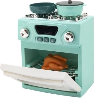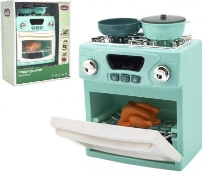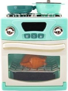 Zum Set gehören Herd, Ofen, zwei Töpfe und ein Brathähnchen für ein vollständigeres Spielerlebnis.