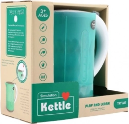 Der Wasserkocher ermöglicht das echte Eingießen von Wasser, wodurch die Authentizität des Spiels erhöht wird. Bei Einschalten gibt er realistische Licht- und Toneffekte von sich und ist sicher und einfach für Kinder zu bedienen.