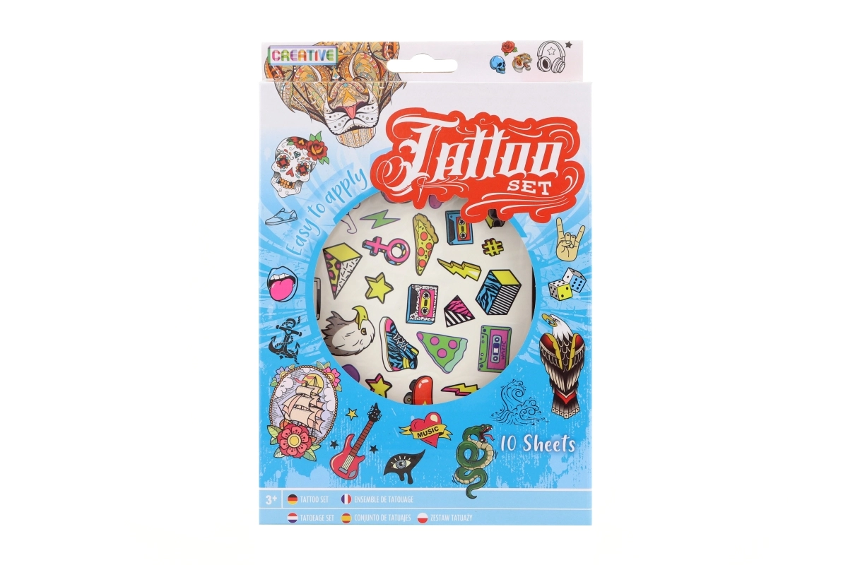 Entdecken Sie die kreative Seite mit diesem Tattoo-Set, das 10 Bögen voller aufregender Tattoos für Mädchen und Jungen enthält. Genießen Sie die einfache Anwendung und den unvergesslichen Spaß für Kinder.