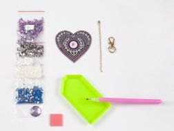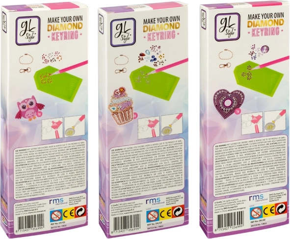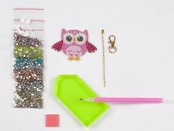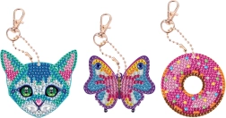 Dieses Set ermöglicht es Ihnen, drei verschiedene Schlüsselanhänger in Form einer Eule, Eiscreme und eines Herzens zu gestalten. Jeder Schlüsselanhänger ist mit bunten Steinen verziert, die Ihren Schlüsseln einen persönlichen Stil verleihen.