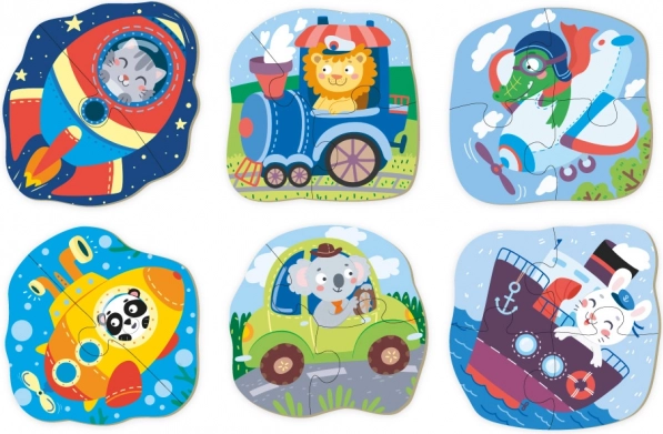 Dieses Set enthält mehrere kleine Konturpuzzles mit Tier- und Fahrzeugmotiven. Dank der unterschiedlichen Anzahl an Teilen (2–4) gehen Kinder Schritt für Schritt vor, gewinnen Sicherheit und Freude am Erfolg. Das kompakte Maß von 13 × 13 cm ist ideal für zu Hause und unterwegs.