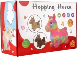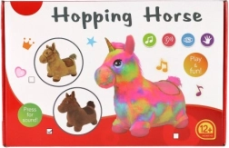 Ein Knopf, versteckt unter der Mähne, aktiviert fröhliche Soundeffekte, die Kinder begeistern und zu weiterem Hüpfen motivieren.