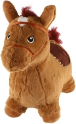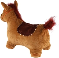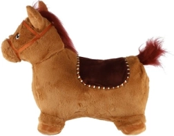 Dieses niedliche Hüpfpferd mit braunem Plüschbezug ist ideal für Kinder ab 12 Monaten. Die ergonomische Form unterstützt die Entwicklung von Stabilität, Motorik und Gleichgewicht, während die Ohren als praktische Griffe für einen sicheren Halt dienen. Durch Drücken des Knopfes unter der Mähne gibt das Pferd fröhliche Geräusche von sich, die zu weiterem Spielen animieren.