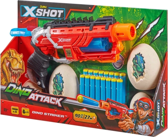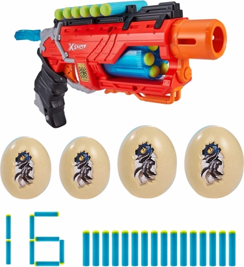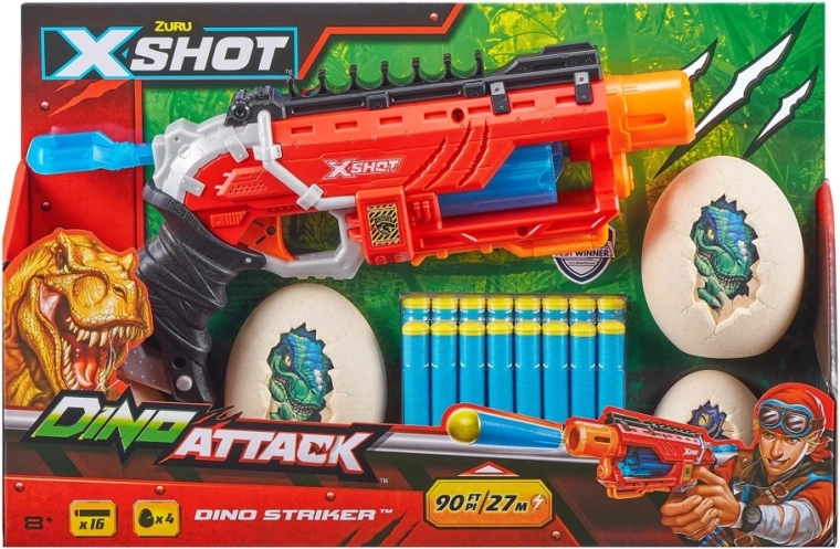 Der X-Shot Dino Striker aus der Dino Attack-Serie kombiniert ein attraktives Dinosaurier-Design mit einer einfachen mechanischen Bedienung. Einfach spannen, zielen und schießen – ideal zum Trainieren der Präzision und für spannende Duelle mit Freunden.