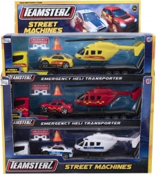 Wir präsentieren Ihnen den Teamsterz Transport von Auto und Hubschrauber, ein perfektes Set für kleine Verkehrs- und Rettungseinsatz-Fans. Jedes Set enthält ein LKW, der ein Auto und einen Hubschrauber transportiert. Erhältlich in drei verschiedenen Farben - rot, gelb und weiß.