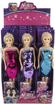 Diese elegante Puppe ist bereit für Party und Modenschau. Mit zweiseitigen Pailletten verzierte Kleider bringen sofortigen Spielspaß – mit einer einfachen Handbewegung ändern Sie den Farbeffekt und kreieren in Sekundenschnelle einen neuen Stil. Der feste Kunststoffkörper ermöglicht einen stabilen Stand und leichtes Umkleiden.