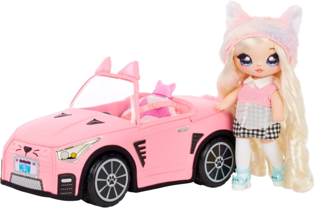 Einzigartige Drucke und Details wie Ohren oder Lizenz 'MEOW' machen das Cabriolet zu einem stilvollen Accessoire für jede Puppe.