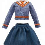 Modepuppe Hermine mit vollem, reichen Haar. Sie hat bewegliche Arme, Beine und Kopf. Im Lieferumfang enthalten sind ein Set mit Verkleidungen, ein Zauberstab, ein Schal und die Katze Krummbein. Geeignet ab 5 Jahren.