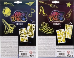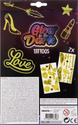 Dieses Set leuchtender Tattoos ist ideal für Mädchen, die ihrem Stil Glanz verleihen möchten. Genießen Sie die verschiedenen im Paket verfügbaren Motive, die zwei Tattooblätter umfassen. Einfach ausschneiden, auf die Haut legen, mit einem Schwamm anfeuchten und fertig! Die Anwendung ist schnell und macht Spaß.