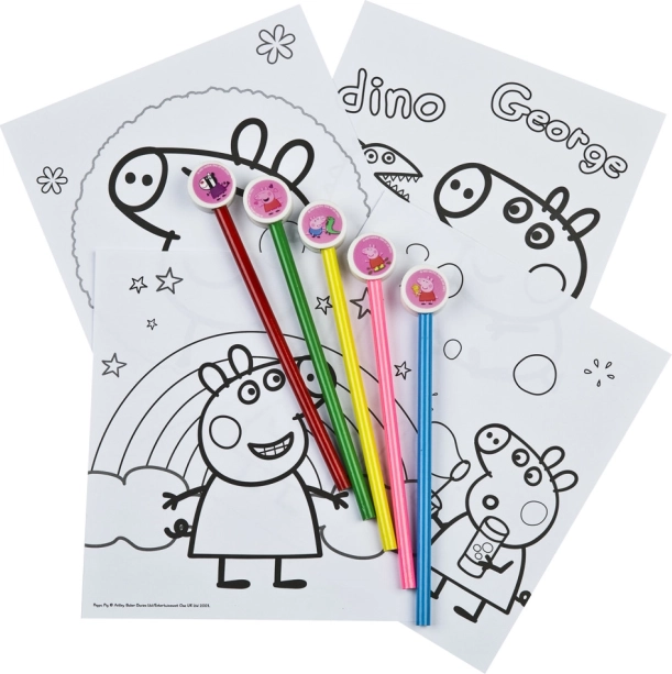 24 Poster mit Peppa-Pig-Motiven, die Kinder nach ihrer Vorstellung ausmalen können.