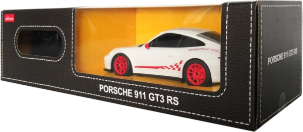 Genießen Sie den Fahrspaß mit dem detailgetreuen Modell PORSCHE 911 GT3 RS mit Fernsteuerung. Der Maßstab 1:24 betont die realistischen Linien und sportlichen Details, während die Federung für ein sanfteres Fahren auf heimischen Oberflächen sorgt. Eine ideale Wahl für Kinder und Supercar-Fans.