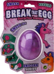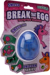 Präsentiert das blaue Ei aus der Unicorn Serie, das Kinder werfen und zerschlagen können, um die Überraschung im Inneren zu entdecken.