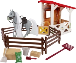Stall, Zaun, Pferdefigur, Futter und Pflegewerkzeuge