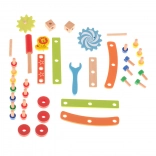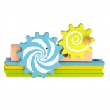 Bunte Zahnräder und Bauteile vermitteln mechanische Prinzipien auf spielerische Weise und fördern die Kreativität.
