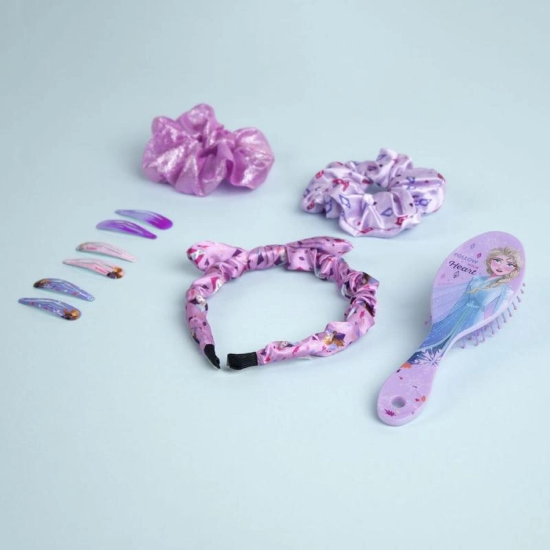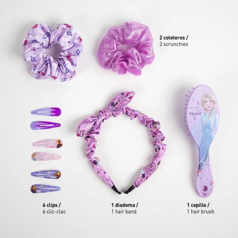 Ein entzückendes Geschenkset mit Haaraccessoires im FROZEN II-Design erfreut jede kleine Fashionista. Enthält 10 praktische Teile: 6 Metall-Haarspangen mit Applikation, einen Haarreif mit Schleife, eine Bürste und 2 Satin-Haargummis. Alles verpackt in einem praktischen Reißverschlusstäschchen – ideal für zu Hause und unterwegs. Geeignet für Kinder ab 6 Jahren.