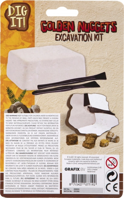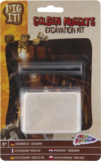 - 4 verschiedene Arten von Schätzen, die ausgegraben werden können: eine goldene Nugget, ein Edelstein, eine Dinosaurier-Fossilie und ein Dinosaurier-Ei.