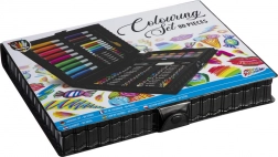 Das Set enthält ein breites Sortiment an Kunstbedarfsartikeln für verschiedene Techniken und Ausdrucksformen.