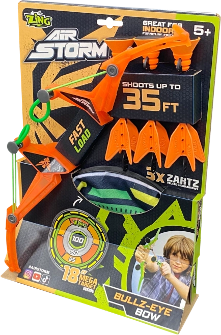 Bogen mit drei Pfeilen und Zielscheibe für sicheren Spaß im Innenbereich. Ideal für Kinder ab 5 Jahren.