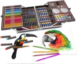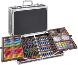 Dieses umfangreich ausgestattete Set enthält alles, was Sie für kreatives Schaffen zu Hause, in der Schule und unterwegs benötigen. Der Metallkoffer mit Innenfächern hält alle Utensilien an ihrem Platz und erleichtert die schnelle Orientierung. Dank der großen Bandbreite an farbigen Medien probieren Sie verschiedene Techniken von der Zeichnung bis zur Malerei aus.