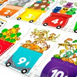Das Kinderpuzzle in Form eines Zuges stellt eine unterhaltsame Herausforderung für kleine Entdecker dar. Es besteht aus einer Lokomotive und neun Waggons, jeder mit einer unterschiedlichen Anzahl an Tieren: