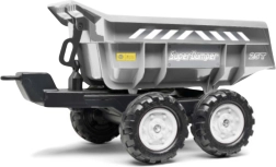 Anhänger „Super Dumper“, vierrädrig, in grauer Farbe. Kompatibel mit Falk-Traktoren. Hergestellt in Frankreich aus hochwertigem Kunststoff.